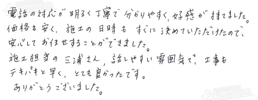 お客様の声 NO.96640 神奈川県横浜市金沢区 F様