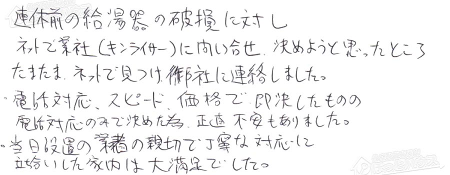 給湯器交換の評判