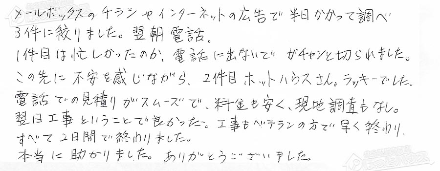「ほっとハウス」の評判・お客様の声