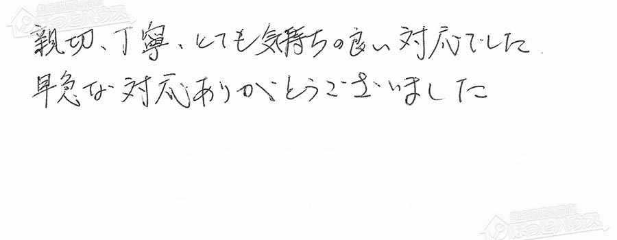 すぐに対応して頂き、とても満足…