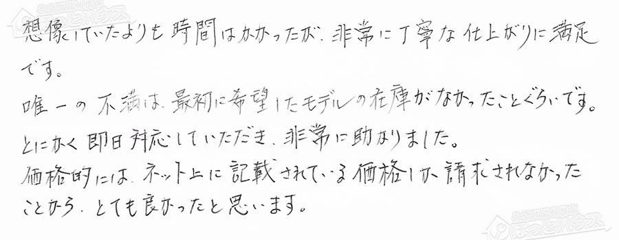 お客様の声 NO.98213 神奈川県横浜市都筑区 F様