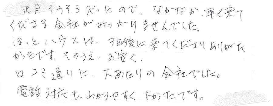 「ほっとハウス」の評判・お客様の声