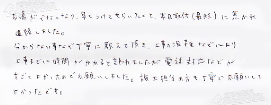 「ほっとハウス」の評判・お客様の声