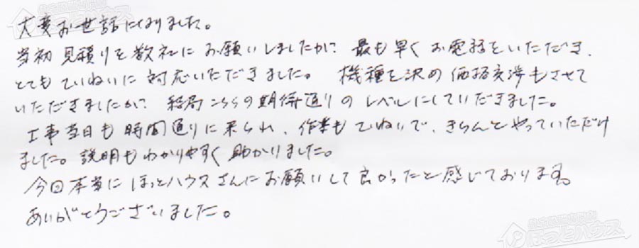 今回本当にほっとハウスさんにお願いして良かったと感じております。