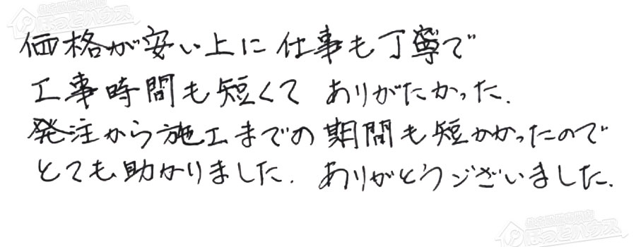 お客様の声 NO.165332 神奈川県川崎市多摩区 I様