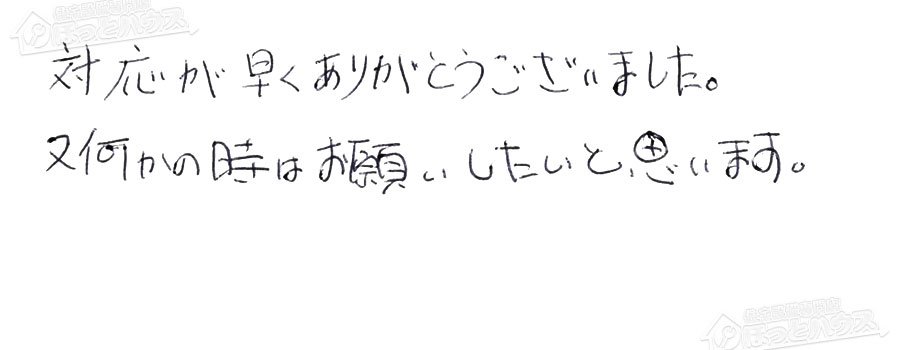 すぐに対応して頂き、とても満足…